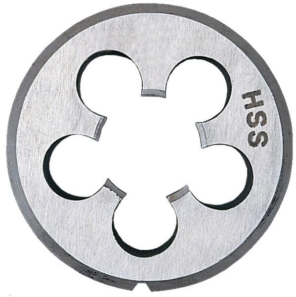Kör alakú HSS-szerszámacélból készűlt menetmetsző Tulajdonságok: - Rendkívűl erős - Menet emelkedés: 3/8" x 20 - Külső átmérő: 1' - Vastagság: 3/8" - Súly: 26 g