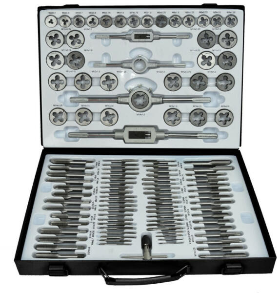 A termék leírása: Ideális belső és külső csavarmenetek vágásához, tisztításához és javításához. Méretek M2-M18. Fém tokban szállítjuk. A készlet tartalma : Szerszámacél szerszámok M2 x 0,4mm; M3 x 0,5mm; M4 x 0,7mm; M5 x 0,8mm; M6 x 0,75mm; M6 x 1,0mm; M7 x 0,75mm; M7 x 1,0mm; M8 x 0,75mm; M8 x 1,0mm; M8 x 1,25mm; M9 x 0,75mm; M9 x 1,0mm; M9 x 1,25mm; M10 x 0,75mm; M10 x