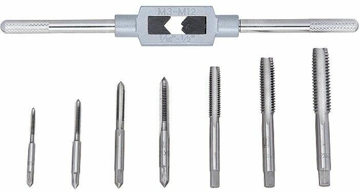 A készlet tartalma: Menetfúrók:1 db M3 x 0,5 mm, 1 db M4 x 0,7 mm, 1db M5 x 0,8 mm, 1 db M6 x 1 mm, 1 db 8 x 1,25 mm, 1 db M10 x 1,5 mm, 1 db M12 x 1,75 mm. 1 db Hajtóvas: M3-M12. Csomagolási paraméterek Súly 0,28 kg Vonalkód 4044996069937 A csomag hossza 250 mm Csomagolási szélesség 115 mm Szállítási magasság 12 mm