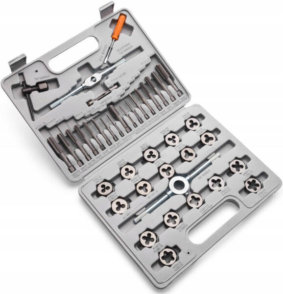 Tartalmaz: Külső menethez: M3x0,5 M3x0,6 M4x0,75 M5x0,8 M5x0,9M6x0,75M6x1M7x0,75M7x1M8x1M8x1,25 1/NPT27. M10x1,25M10x1,5M12x1,5M12x1,75Belső menethez:M3x0,5M3x0,6M4x0,7M4x0,75M5x0,8 M5x0,9M6x0,75M6x1M7x0,75M7x1M8x1M8x1,251 / 8NPT27. M10 × 1,25M10x1,5M12x1,5M12x1,75tartó a csapokhoz2 fajtahajtófej a külső menet vágáshozcsavarhúzó a cseréhezmenetfésűEAN4044996233307