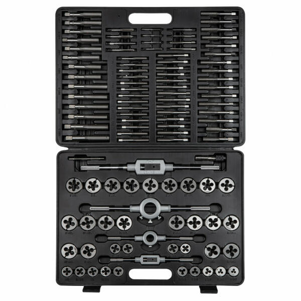A Neo csapok és menetvágók egy 110 darabos készlet, amelyet különböző kaliberű menetes kötések javítására terveztek. Professzionális autószerelő műhelyek, lakatosok, mechanikai műhelyek és szerelési munkák számára készült. A készlet egy bőröndbe van csomagolva. Menetkészítő készlet. Tartalma: 35 pár menetfúró: М2x0,4, М3x0,5, М4x0,7, М5x0,8, М6x0,75, М6x1,