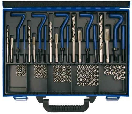 SW STAHL 84015L Menetjavító készlet - kazettában, komplett, megfelelõ spirálfúróval (Ø 5,2 mm, 6,3 mm, 8,3 mm, 10,4 mm, 12,4 mm), menetfúróval, behajtóval, csaptörõvel és menetjavító betétekkel - Tartalmazza az alábbi méreteket M5 x 0,8 M6 x 1,00 M8 x 1,25 M10 x 1,50 M12 x 1,75 M5 x 0,80 M6 x 1,00 M8 x 1,25 M10 x 1,50 M12 x 1,75