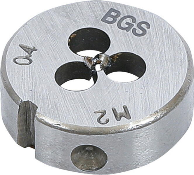 Nagyteljesítményű HSS-gyorsacélból készült menetmetsző, köszörült kivitelben. Nagyteljesítményű HSS-gyorsacélból készült menetmetsző, köszörült kivitelben. Ötvözetlen és enyhén ötvözött acélokhoz 800 N/mm2 szilárdságig, ill. színes és könnyűfémekhez. Jobbos. A menetet egy műveletben vágja ki. Típus : B alak, zárt előhasított Menet : metrikus finom DIN ISO