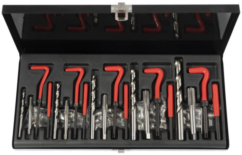 Felhasználási terület: - A menetbetét újonnan vágott menetekbe való beszereléséhez Alkalmazás: - Helyezze a betétet a szerszámra - A hajtócsapnak a horonynyílásban kell ülnie - Állítsa be a beállító gyűrűt - Enyhe nyomással forgassa a szálbetétet a menet irányába