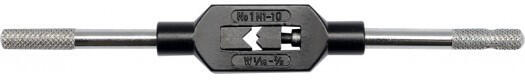 Ideális menetvágáshoz nehezen hozzáférhető helyeken. Kétpofás befogóval négyszög szárak befogásához. Acél szárakkal, ebből az egyik szár lecsavarozható, a másik rögzít. Kivitel: présöntött cink ház Szorítópofák: edzett Típus: 1 Tartomány: M+MF : M1-M10 Ww: 1/16"-3/8" G: -