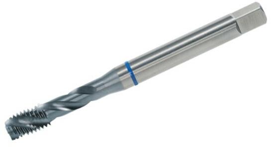 VÖLKEL gépi menetfúró METRIKUS, NORMÁL menet DIN 371 Speciális Sp. 35° (kék gyűrűs) Gépi menetfúró, Speciális, KÉK gyűrűs, csavart hornyú 39°, DIN 371, HSS-E. Alkalmazható magas kopásállóságú 1200 N/mm2 szakítószilárdságú fémekhez, magasan ötvözött anyagokhoz, rövid forgácsot adó rozsdamentes anyagokhoz, ötvözött szerszámacélokhoz. ( VÖLKEL 364. . )