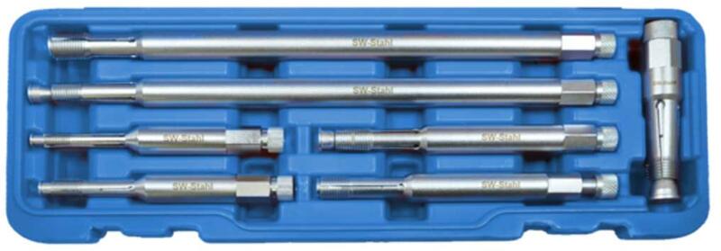 SW STAHL 03669L Menetjavító készlet Méretek: -M8 x 1,0, meghajtó kulcsméret 13 mm, 100 mm hosszú -M10 x 1,0, meghajtó kulcsméret 13 mm, 100 mm hosszú -M12 x 1,25, meghajtó kulcsméret 13 mm, 120 és 250 mm hosszú -M14 x 1,25, meghajtó kulcsméret 13 mm, 120 és 250 mm hosszú -M16x1.5, meghajtó kulcsméret 18 mm, 70 mm hosszú