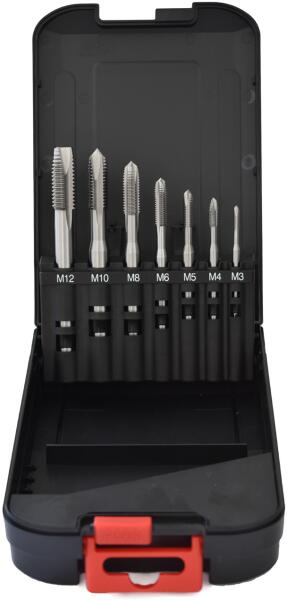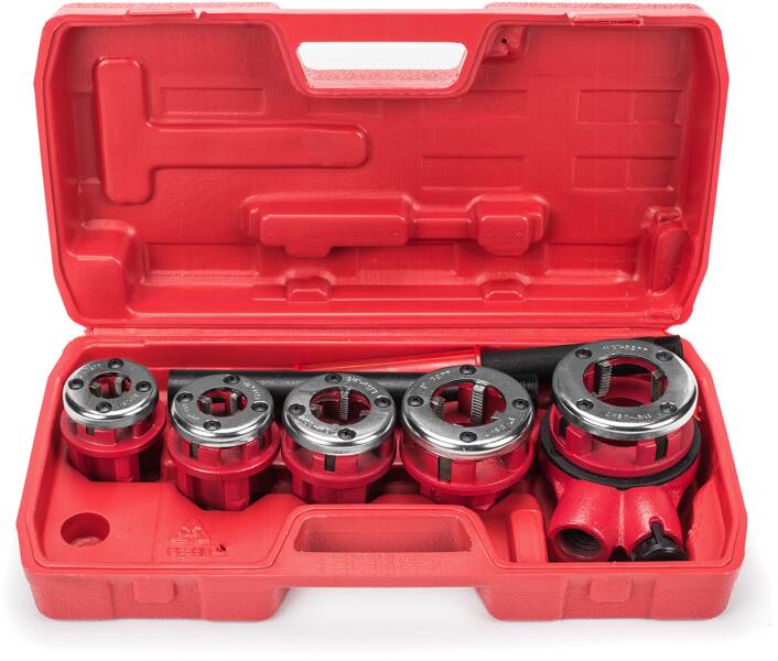 Csap készlet csőmenetek vágásához. Kiváló minőségű szerszámacélból készült. A készlet tartalma: Menetfej: 3/8 "; 1/2"; 3/4 "; 1"; 1 1/4" Koppintson a Kiterjesztés: 2 db Praktikus műanyag tok