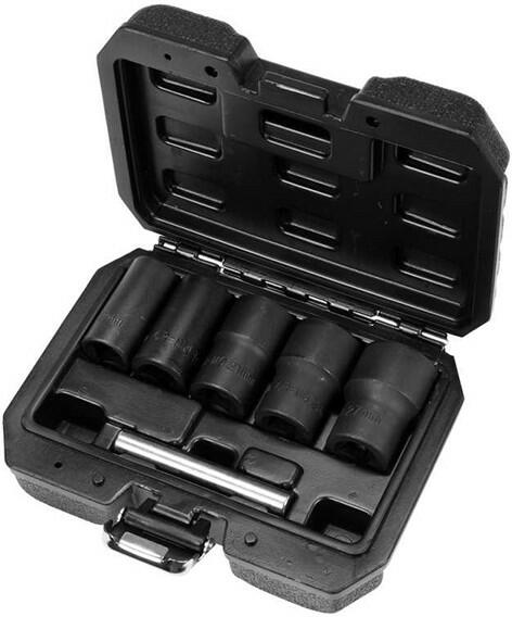 Eszköztípus: Spirális csavar- és anyakihúzó készlet Készlet tartalma: 6 darab Méretek: 10 mm, 11 mm, 12 mm, 13 mm, 14 mm, 19 mm Anyaga: 40Cr acél Felületkezelés: Okszidált Felhasználás: Sérült vagy megszorult csavarok és anyák eltávolítása Jobbra menetes csavarok és anyák eltávolítása Jellemzők: Speciális spirális kialakítás, amely szoros tapadást biztosít a sér