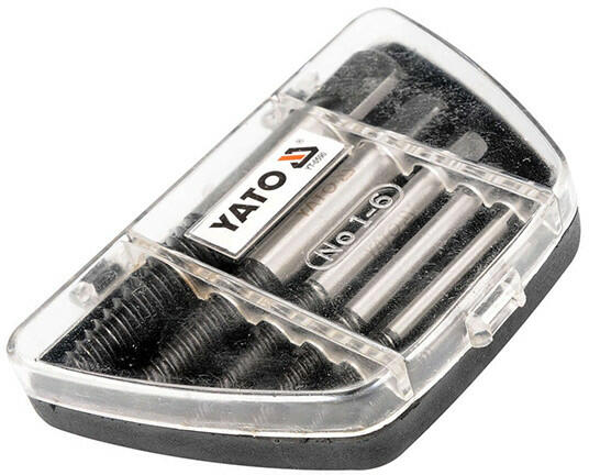 YATO 6db-os Törtcsavarkiszedő készlet. Egy nagyon hasznos szerszám, ami sok idegeskedéstől kímélhet meg bennünket. Ugyanis amennyiben egy csavar annyira be van feszűlve, vagy éppen rozsdálva, hogy már a csavarlazító spray-k sem segítenek, és inkább letörik a csavar feje minthogy megmozdúljon, akkor csak lazán elővesszük a TÖRTCSAVARKISZEDŐ KÉSZLET ünket, és máris megol