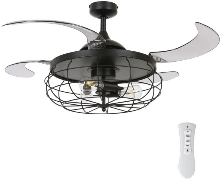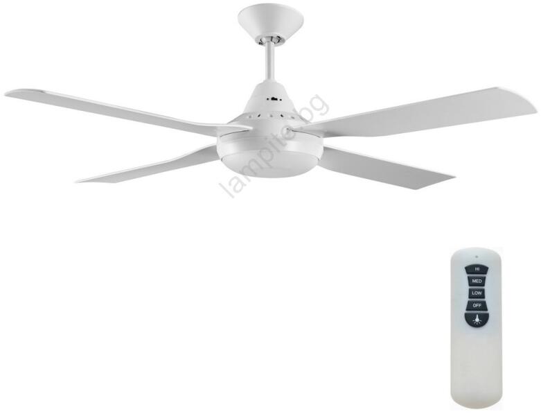Mennyezeti ventilátor lámpával, távirányítóval vezérelhető. 3 sebességfokozat. A fényerő csökkentése 3 lépésben. Légáramlás: 200 m3/perc. Szobaméret: 20 m2. Nyári és téli üzemmód. A távirányítót tartalmazza.