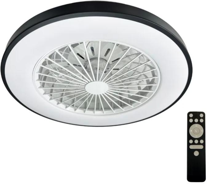 Modern LED mennyezeti lámpa nagy teljesítményű ventilátorral. Alkalmas alacsony helyiségekbe is, ahol kevés a hely. Távirányítót tartalmaz. Egy távirányítóval több lámpa is vezérelhető. A távirányítóval folyamatosan választhatja a fényerősséget. A színhőmérséklet is változtatható: 3000K-tól 6500K-ig. Memória funkció, időzítő és éjszakai fény mód. A ventil