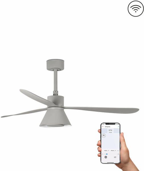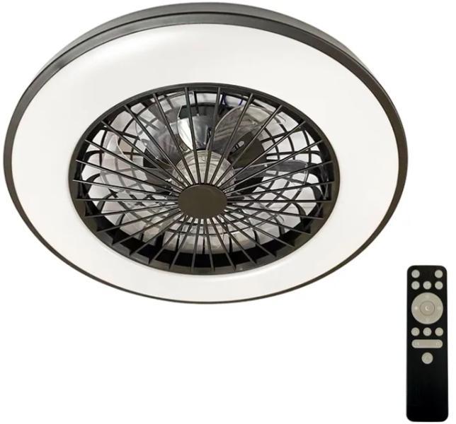 Modern LED mennyezeti lámpa nagy teljesítményű ventilátorral. Alkalmas alacsony helyiségekbe is, ahol kevés a hely. Távirányítót tartalmaz. Egy távirányítóval több lámpa is vezérelhető. A távirányítóval folyamatosan választhatja a fényerősséget. A színhőmérséklet is változtatható: 3000K-tól 6500K-ig. Memória funkció, időzítő és éjszakai fény mód. A ventil