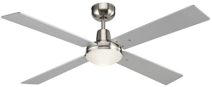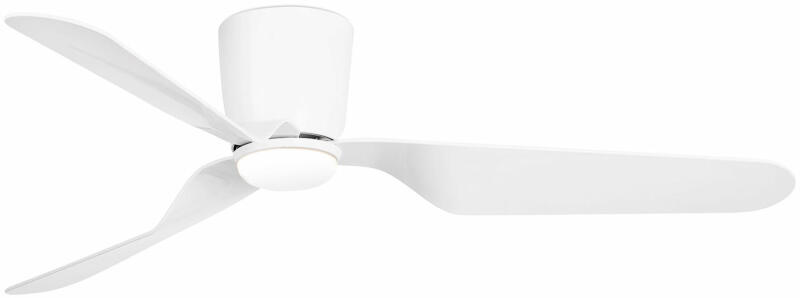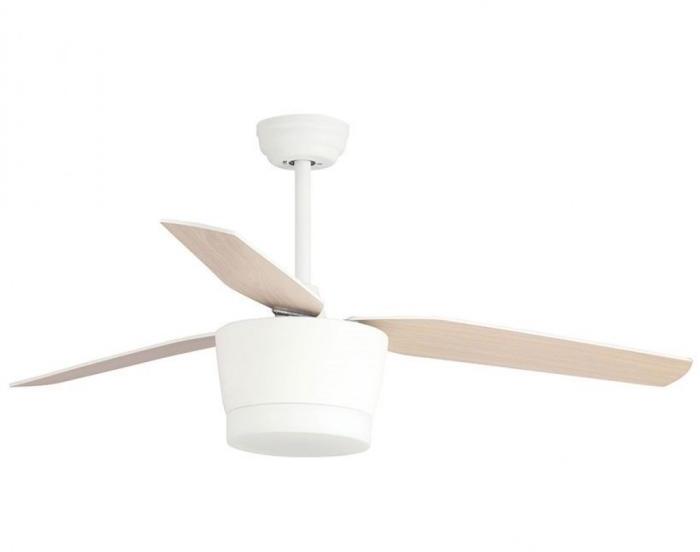 Ventilátoros lámpa a Nova Luce-től. Meleg fehér fényű, beépített LED fényforrást tartalmaz, mely nem cserélhető. Világítási szöge 160fok. Magasságnál a minimális belógást adtuk meg, mely 510mm-re növelhető. A lámpatest matt fehér acélból, a búra üvegből készült. A fa ventilátorlapoknak köszönhetően nagyon csendes a működtetése. 5 féle sebességfokozat közü