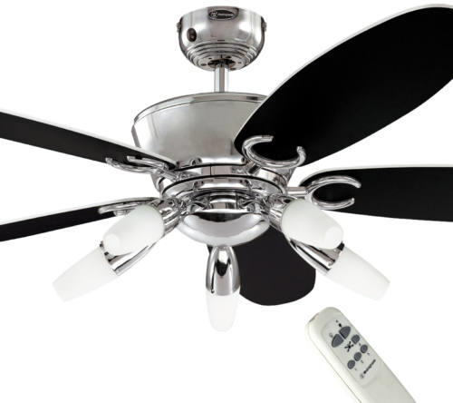 Westinghouse Arius távirányítású, fehér, feketeEgy modern, stílusos mennyezeti ventilátor, világítással. Formatervezése és esztétikus kidolgozása illeszkedik szinte minden szobába. Garantált a kiváló minőség. A ventilátor króm testéhez 5 penge (lapát) kapcsolódik, melyek egyik oldala fekete a másik fehér színű. A ventilátor lapátok fából, ránctalan felülettel k