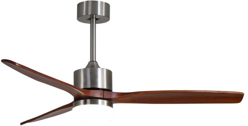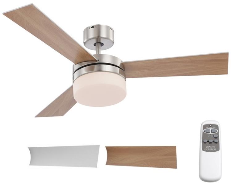 Mennyezeti ventilátor távirányítóval 3 sebesség + ellenkező forgásirány (85-145-200 ford / perc). Két irányban működtethető. 15 m2 helységekhez ajánlott Távirányító a csomagolás része Felszerelés mennyezetre 35o hajlásszögig Kétoldalú lapátok /világos barna, ezüst/