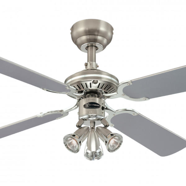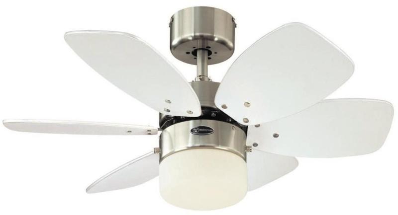 Westinghouse Princess Radiance II 78704 mennyezeti ventilátor integrált fényforrással letisztult formatervezésű, egyedi megjelenését a csiszolt alumínium test és a világos juhar (egyik oldal) valamint ezüst (másik oldal) színű lapátok biztosítják. Tökéletesen kiegészít bármely típusú és stílusú helyiséget. A ventilátor átmérője 90 cm, kb. 10 m2 méretű helyiség s