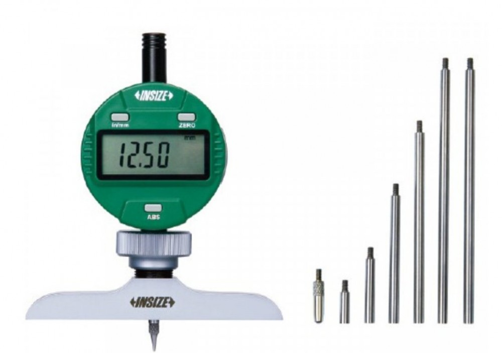 Az Insize digitális mérőórás mélységmérő, 0-12.7 mm tartományú, 0.01 mm felbontással, rozsdamentes acél mérőhíddal és hegyes mérőcsúccsal rendelkezik. • Tartomány: 0-12.7 mm / 0-0.5 • Felbontás: 0.01 mm / 0.0005 • Pontosság: ±20µm • Mérőhíd átmérője: 16 mm • Kapcsológombok: be/ki (on/off), nullázó (zero), mm/inch, ABS, data preset, mérés irányváltás