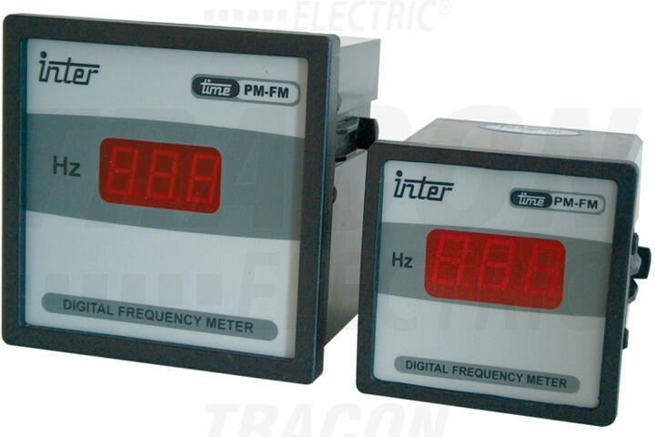 Tracon FD-96, Digitális frekvencia mérő 96×96mm, 45-75Hz Méréstartomány : 45 - 75 Hz Pontossági osztály: 1 Feszültség fajtája: AC Kivitel: homlokoldali szerelés Szélesség: 96 mm Magasság: 96 mm Modulszélesség: 5,33 Mérőeszköz: digitális