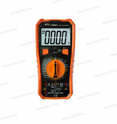 OMU system METER ÚJ NMM63 mérőműszer digitális 20A, 750VAC, háttérvilágítás TRUE RMS A műszer egy stabil és nagy teljesítményű digitális multiméter. Az LCD kijelző 42 mm magas a jó leolvashatóság érdekében. A műszer funkciói: DCV, ACV, DCA, ACA, Ellenállás és kapacitás, Frekvencia, Dióda, Trióda, Folytonossági teszt, Hőmérséklet mérése, Automatikus kikapcsolás