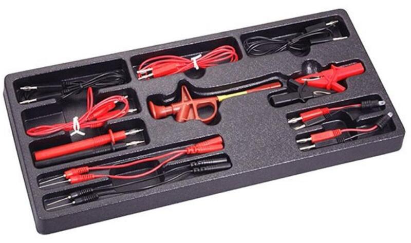 Elektromos hiba-keresőhöz csatlakozó és kábel készlet, 15 darabos. A készlet a multiméterek (oszcilloszkóp) ideális kiegészítője, hasznos segítség a modern járművek elektronikai áramköreinek, vezetékeinek, alkatrészeinek tesztelésére, értékelésére. Gyors és kényelmes vizsgálatot tesz lehetővé, a vezetékek elvágása (blankolása) nélkül is. Kompatibilis az európ