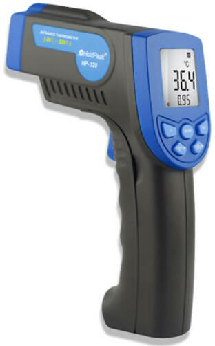Az infravörös hőmérséklet érzékelés segítségével érintés nélkül mérhető meg szilárd vagy folyékony tárgyak hőmérséklete. A pisztoly szerű kialakítás lehetővé teszi, hogy pontosan az adott terület hőmérsékletét tudjuk megmérni. A mérési eredményeket a jól látható LCD kijelzőről olvashatja le. - Infravörös hőmérsékletérzékelő lencse. - Távolság/tá