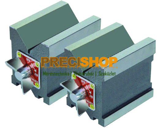 Termék részletekEdzett; köszörült; 90 fok; 100x70x95mm po: 0,01mm ; 100kg ki-be kapcsolható mágnes-erő; párban