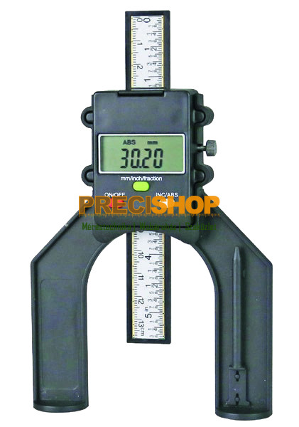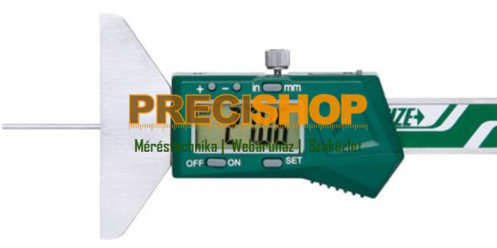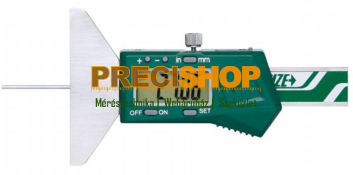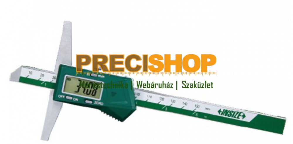 Az Insize digitális mélységmérő rozsdamentes acélból készült, 0-150 mm tartományú, 0.01 mm felbontással, bővíthető mérőhíddal, tiszta LCD kijelzővel és rögzítő csavarral rendelkezik. • Tartomány: 0-150 mm / 0-6 • Felbontás: 0.01 mm / 0.0005” • Pontosság: ±0.03 mm • Kapcsológombok: be/ki (on/off), nullázó (zero), mm/inch • Automatikus kikapcsolás, bekapcso