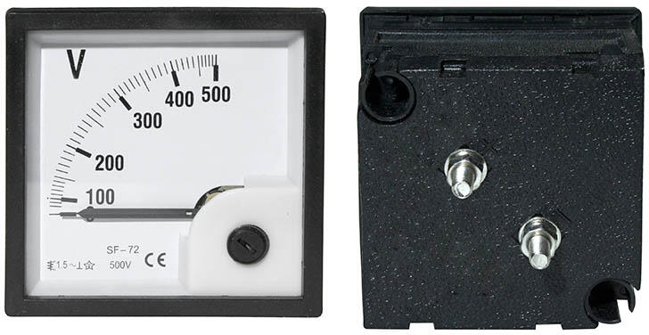 Analóg voltmérő Specifikáció: - Munkatartomány: 0-500 V - Áramtípus: AC - Pontosság: 2. osztály - Méretek: rajz a galériában