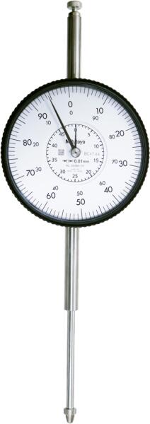 Nagy átmérőjű skálával: 78 mm. 50 mm méréstartomány 0.01 mm felbontással. Tartomány: 50 mm Tartomány/ford. : 1 mm Skálaosztás: 0.01 mm Skála: 0-100 (100-0) Mérőerő: 0.4 - 3 N Tömeg: 283 g Szár: 8 mm Tapintó: keményfém tapintó, menet M 2.5 x 0.45 mm Típus: EN ISO Standard Ismételhetőség: 3 m Hiszterézis hiba: 6 m Nemeskő csapágy: igen Ütésálló: igen Digitális/Ana