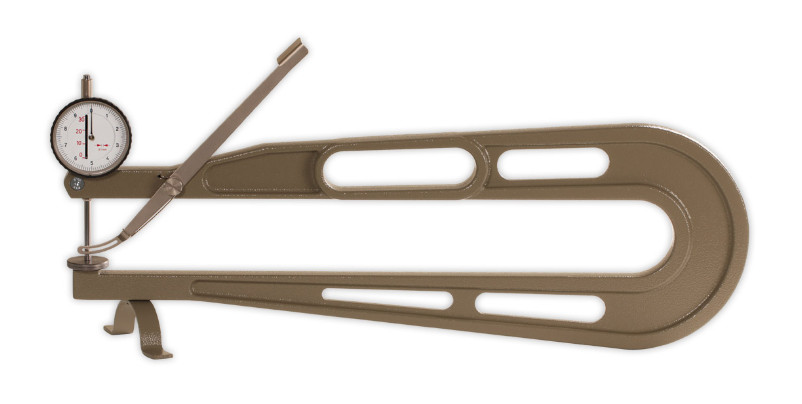Termék részletekEgyszerű kézi mérőeszköz vastagságméréshez. Öntvény kengyel 15 mm benyúlással. 10 mm vastagságig 0,1 mm leolvasási pontosság. A tapintó átmérő: 6,35 mm