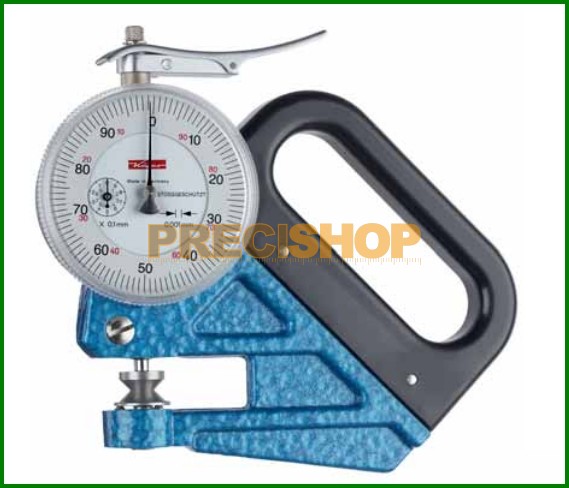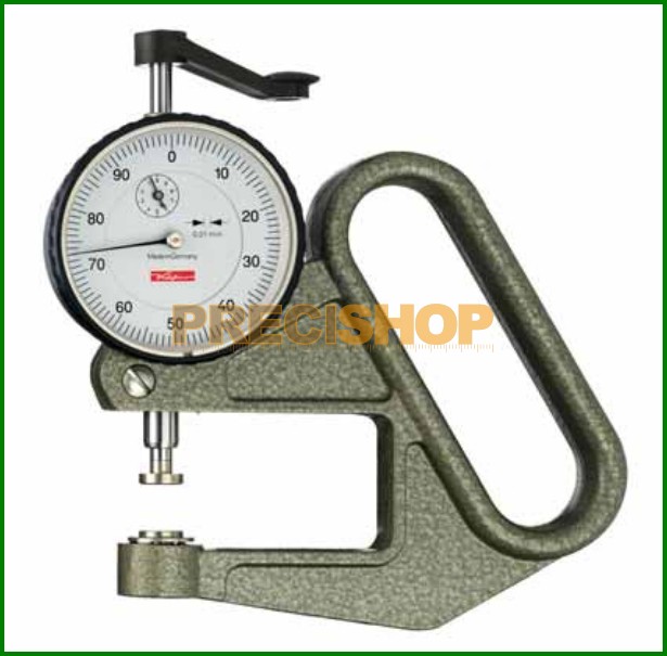 Precíz mérőeszköz vastagságméréshez. Öntvény kengyel 30 mm benyúlással. 1 mm vastagságig 0,001 mm leolvasási pontosság. A tapintó átmérő: 6,35 mm Mérőóra kiemelő karral. Vékony fóliák pontos méréséhez. Mérőóra 1 körbefordulása: 0,1mm.