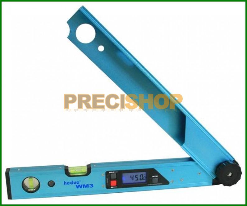 Termék részletekA hedue WM3 szögek másolását és felrajzolását teszi lehetővé gyorsan és pontosan. A digitális szögmérő mérési tartomány 0 és 225°, pontossága 0,1°. A nagyméretű megvilágított kijelző könnyű leolvasást biztosít még sötét helységben is. A kijelző felbontása 0,05°. A digitális szögmérő szárát a központi csavarral akár rögzíthető is. A WM3 2db AAA elemme