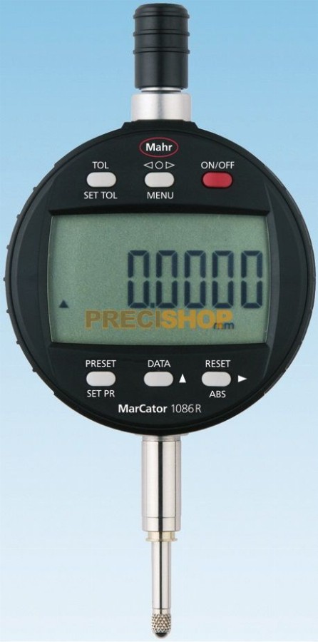 Termék részletekMahr 4337625 Digitális mérőóra MarCator 1086 Ri| IP védelmi fokozat: IP 42| Adatinterfész: Digimatic, Opto RS-232C, USB, Beépített vezeték nélküli kapcsolat| Gyári szabvány| Mérési tartomány mm-ben: 25mm| Osztásérték mm-ben: 0.0005, 0.001, 0.002, 0.0