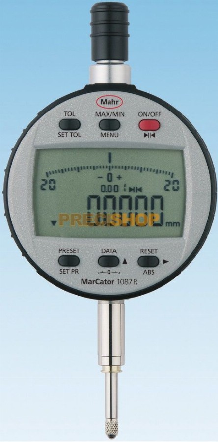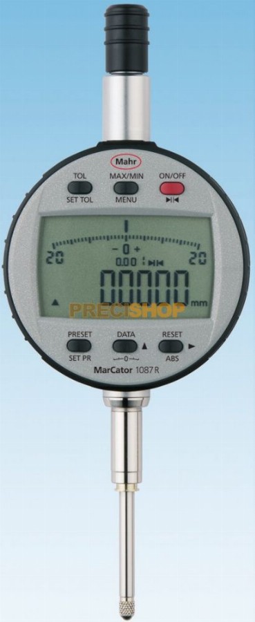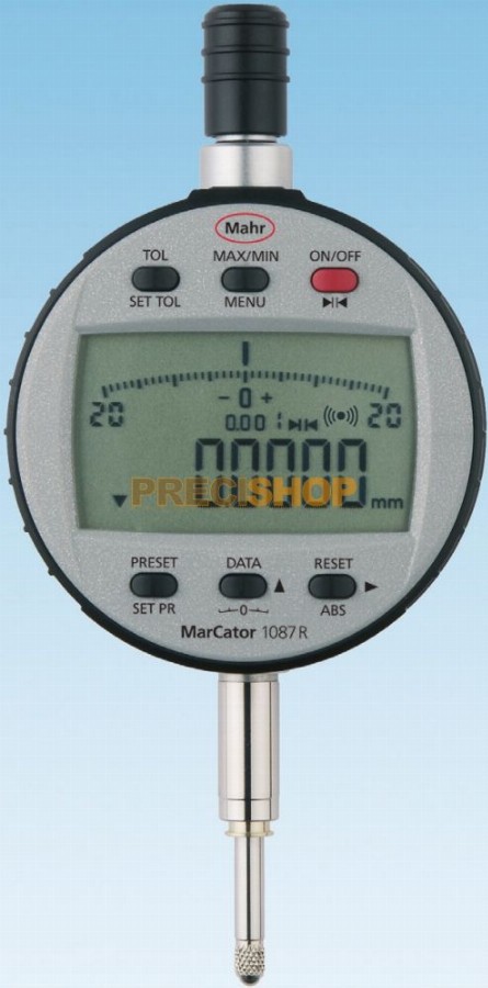 Mahr 4337663 Digitális mérőóra MarCator 1087 Ri| IP védelmi fokozat: IP 42| Adatinterfész: Digimatic, Opto RS-232C, USB, Beépített vezeték nélküli kapcsolat| Gyári szabvány| Mérési tartomány mm-ben: 12.5mm| Osztásérték mm-ben: 0.0005, 0.001, 0.002, 0 REFERENCE, ABS LOCK, MIN/MAX érték kijelzés, TOL tűréshatár beállítás, IP42, Beépített vezetéknélküli adatátviteli