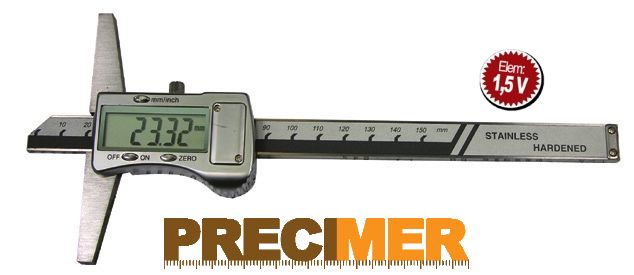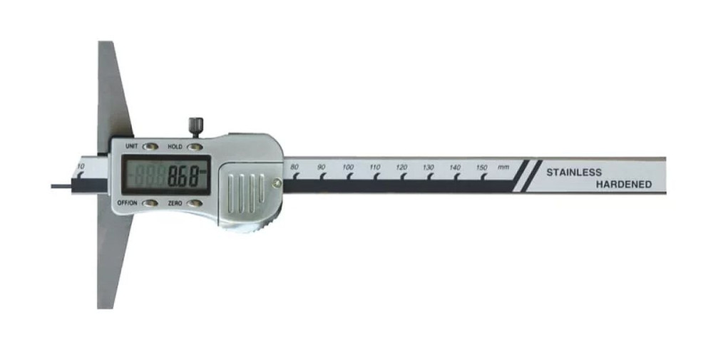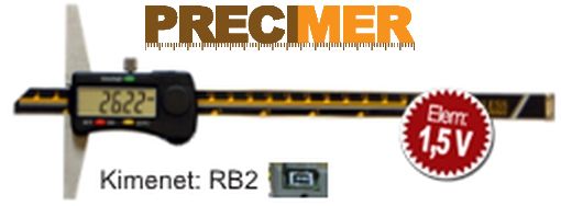 Rozsdamentes acél, edzett; méréstartomány 0-150mm, Leolvasás·0,01·mm·vagy·0,0005“; Funkció: on / off , mm/inch átváltó, HOLD,RB5 adatkimenet, DIN·862; 3V·elem; Dobozban
