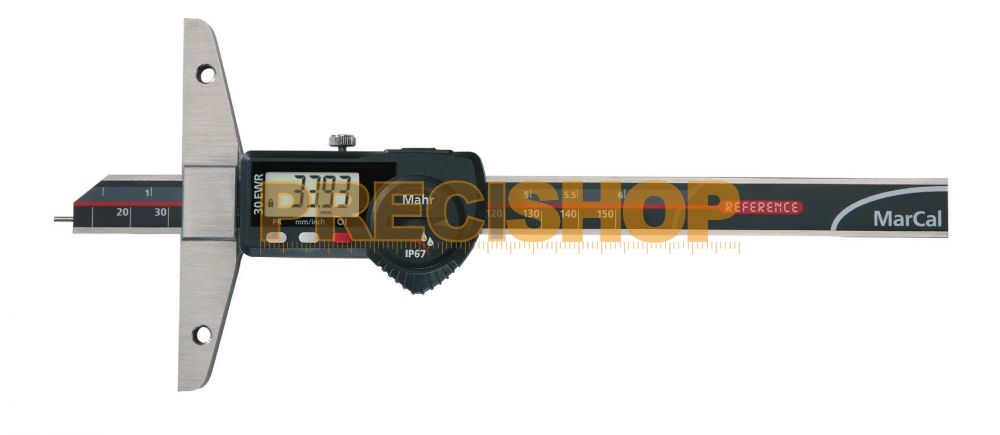 Mahr 4126701 Digitális mélységmérő tolómérő MarCal 30 EWR , Méréstartomány: 0 - 300 mm, Osztásérték, mm/inch: 0.01 mm / 0.0005 inch, Adatinterfész: Digimatic, Opto RS-232C, USB, IP védelmi fokozat: IP 67 Funkciók: AUTO-ON/OF, mm/inch LOCK funkció (billentyűzet zárolás), RESET (kijelző nullázása), Preset (előre beállított méret), DATA (adatkiviteli kábellel), Kontraszto