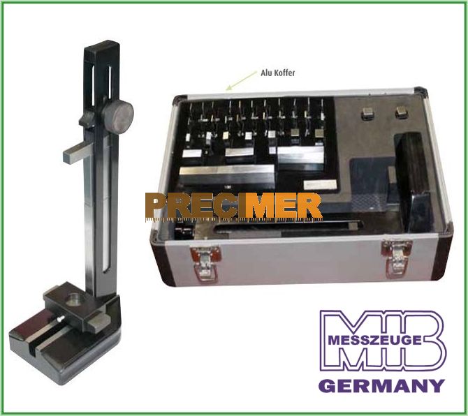 · méréstartomány: 6 - 180 mm · leppelt mérőfelület · 33 mérőhasábbal 1,005, 9x 1,01 -1,09, 9 x 1,10 - 1,90, 9 x 1,00 - 9,00, 3 x 10.00 - 30.00, 50,00, 100,00 mm