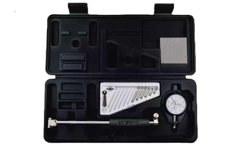 Analóg mérőórás furatmérő készlet zsákfuratok méréséhez 15 - 35mm tartományban 0,001mm pontosággal. Cserélhető betétek, keményfém tapintócsúcsok a tartósság érdekében. Tartomány: 15 - 35 mm Kontaktpont elmozdulás: 1.2 mm Síklapúság: 0.001 mm Tapintó mélység: 150 mm Mérőóra száma: 2109AB Tömeg: 350 g Pontosság: 4 µm Pontosság: 4 µm Ismételh