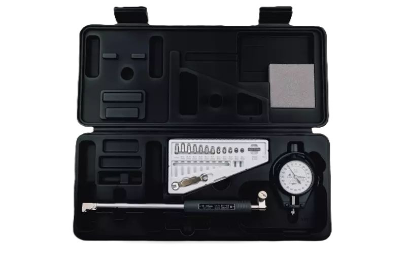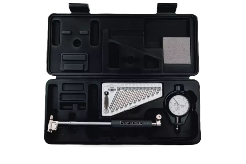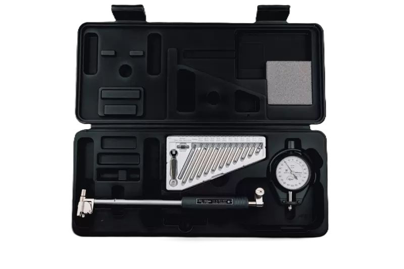 Analóg mérőórás furatmérő készlet zsákfuratok méréséhez 50 - 150mm tartományban 0,01mm pontosággal. Cserélhető betétek, keményfém tapintócsúcsok a tartósság érdekében. Tartomány: 50 - 150 mm Kontaktpont elmozdulás: 1.2 mm Síklapúság: 0.01 mm Tapintó mélység: 150 mm Mérőóra száma: 2046AB Tömeg: 380 g Pontosság: 4 µm Pontosság: 4 µm Ismételh