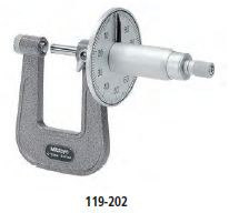 A csőmérő mikrométer görbült felületek, csővastagság, csapágyak, gyűrűk méréséhez javasolt. Digitális/Analóg: Analóg Coll-mm: Metrikus Tartomány: 25 - 50 mm Graduation: 0,01 mm Max. Permissible Error J MPE: ±3 µm Síklapúság: 0,6 µm Ülék/Csúcs: Type E, sperical anvil SR=4 mm/ flat spindle Mérőorsó: With spindle lock, ø6,35 mm, spindle pitch 0,5 mm Scale: Thimble and