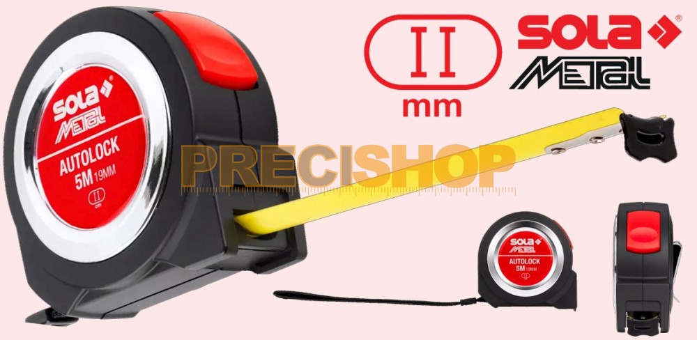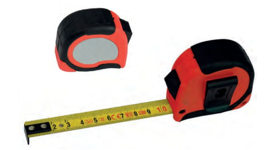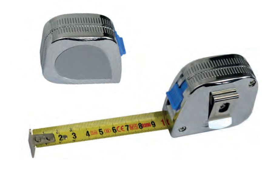 Termék részleteksárgára festett acélszalag, rozsda ellen védett,mm-es beosztás felső és alsó él,folyamatos, fekete cm számozás,deciméter számok piros színben,krómozott műanyag ház,szalagütköző akasztó, automatikus szalag visszatekercselés,övcsipesz