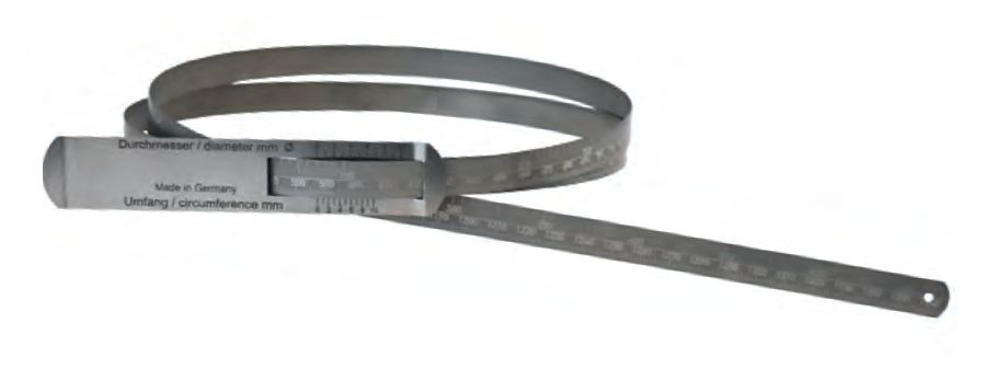 Termék részletekKerületmérő mérőszalag, tart: K=2190-3780mm D=700-1200mm, nóniuszos leolvasás, osztás: 0,1mm, szélesség:13mm.