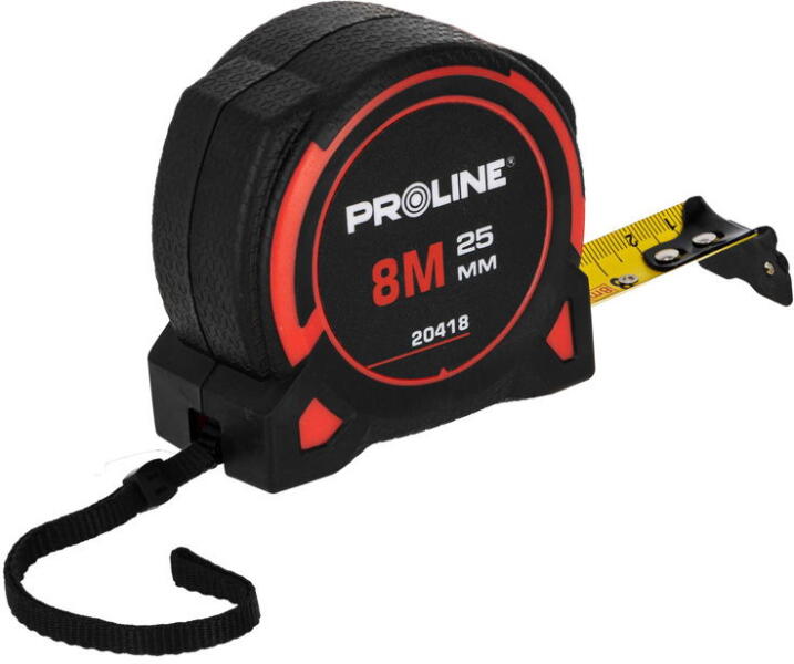 Hossz: 8 m Szélesség: 25 mm Dupla stoppos Sérülés- és törésálló ház Ház anyaga: Műanyag Szalag anyaga: Acél PVC tartóval