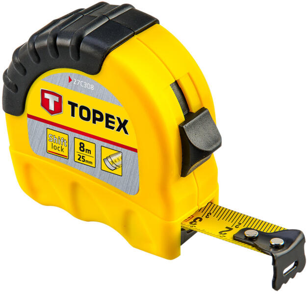 A TOPEX legnépszerűbb acél mérőszalagja, szalagreteszeléssel felszerelve. A kettős lakkbevonat védi a rányomtatott skálát a kopástól. A tekercselési ütközéscsillapító védi a végzáró kampót a letöréstől. A ház ergonómikus formakialakítása biztos és kényelmes fogást nyújt, a csúszásmentes kivitel biztosítja a használati komfortot és biztonságot. A megbízhat