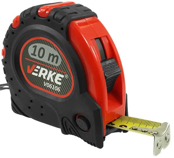A VERKE mérőszalag egy professzionális, 10 méter hosszú mérőeszköz, amely ideális a barkácsoláshoz és a professzionális használathoz. A mérőszalag 24 mm széles, rugalmas acélból készült, és egy precíz nyomtatási technikával nyomtatott sárga skálával rendelkezik. A nylon bevonat védi a szalagot a kopástól és a kifakulástól, míg a masszív mágneses horog biztosít
