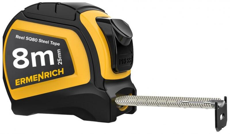 Ermenrich Reel SQ80 mérőszalagAz Ermenrich Reel SQ80 klasszikus mérőszalag a mindennapi feladatok hasznos eszköze, valamint hatalmas segítség a javítások során. Az építési szakemberek eszköztárához is hozzáadható. Használható építési és befejezőanyagok, munkadarabok és szerelvények méreteinek, valamint távolságok mérésére akár 8 méteres tartományban. A szalag ö