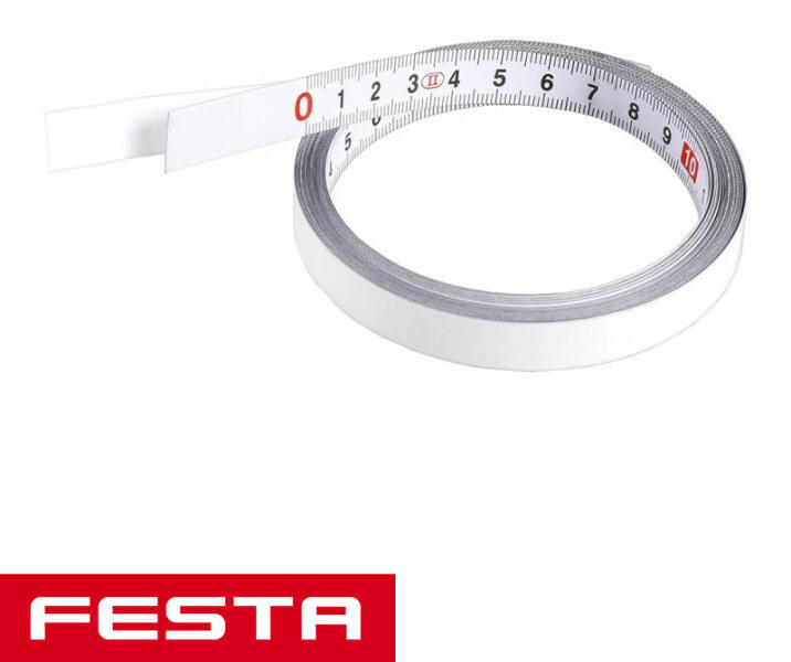 öntapadó fém mérőszalag - 1 m 12,5 mm széles fém öntapadó mérőszalag II. pontossági osztály ragasztóréteg a legtöbb felületre tapad - a felület legyen sima, száraz, por- és zsírmentes