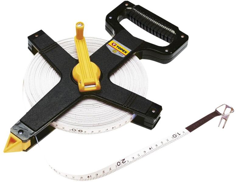 Mérőszalag. Hasznos otthon, a garázsban vagy az építkezésen. A készülékház könnyű és tartós műanyagból készült, amely ráadásul gumival van bevonva. A ház automatikus reteszelő gombbal és praktikus övcsipesszel van ellátva. Az acél mérőszalagot ráadásul nejlonnal borítják, ami megvédi a korróziótól. Tulajdonságok: Nylonszalaggal borított szalag Pa ska tartozék