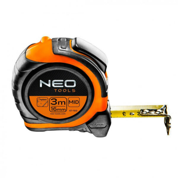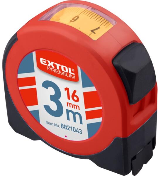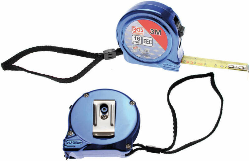 A termék jellemzői: 3 méteres távolságok mérésére tervezték Kétoldalú méretezés Zárható csúszka gomb Könnyű használat Csúszásmentes horog Hőkezelt rugó a hosszú élettartam érdekében Műszaki adatok: Mérési szabvány: Metrikus ABS burkolat Különleges jellemzők: Zárható Penge szélessége: 16 mm Penge hossza: 3 m Penge anyaga: Acél Váz anyaga: ABS Szegecsek száma